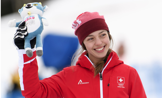 Portrait souriant de la gagnante du Super G aux Jeux olympiques de la Jeunesse